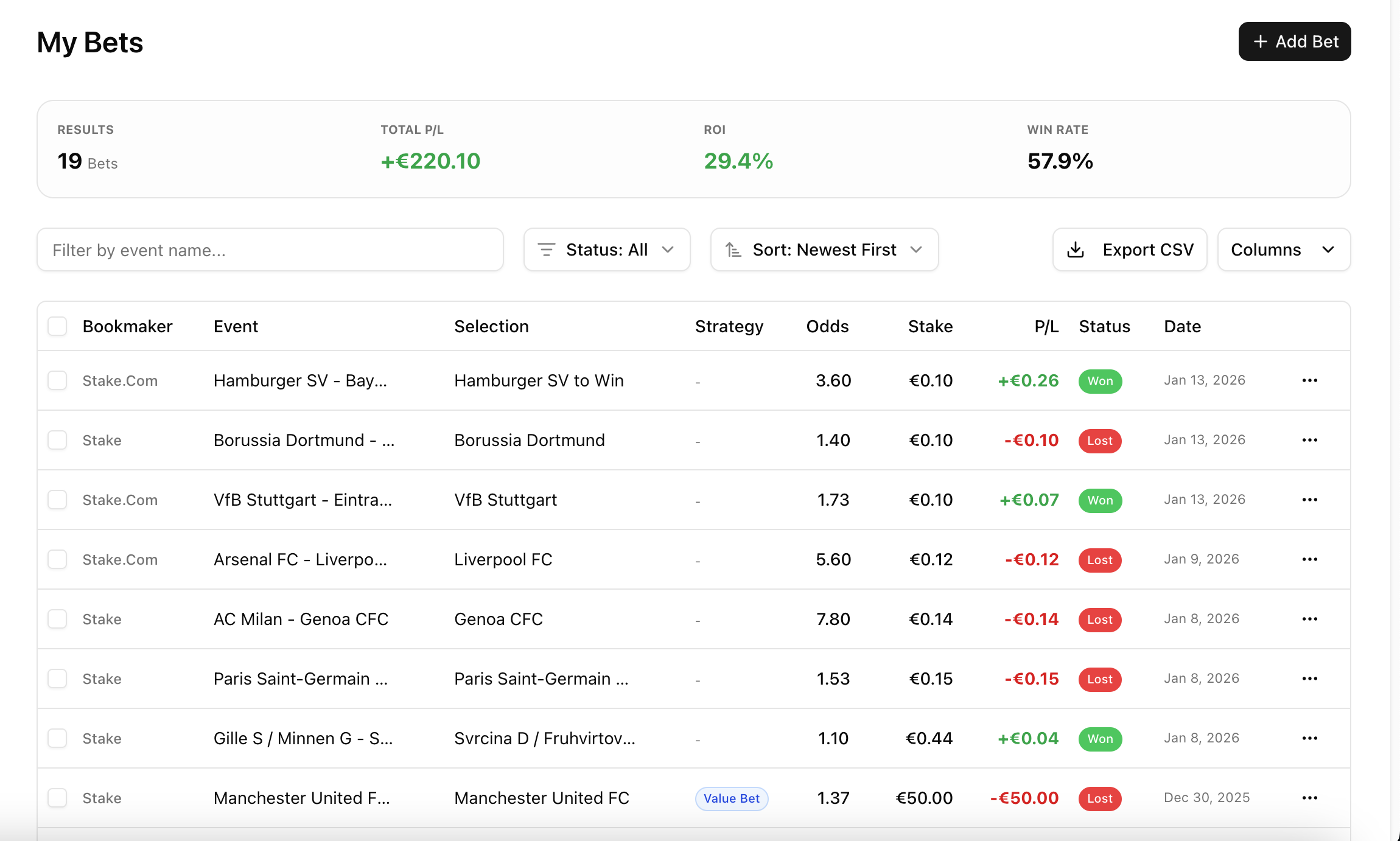 The Fix: Automated tracking removes the human element. MyBets.gg pulls the exact data from the bet slip. The numbers are always 100% accurate to the penny.
